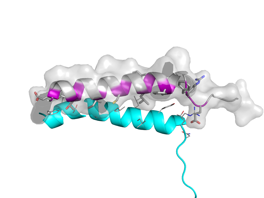 e4pbum1 l:X,Y,Z->m:x,y,z Photosystem II reaction center protein M, PsbM Interaction Interface Pymol