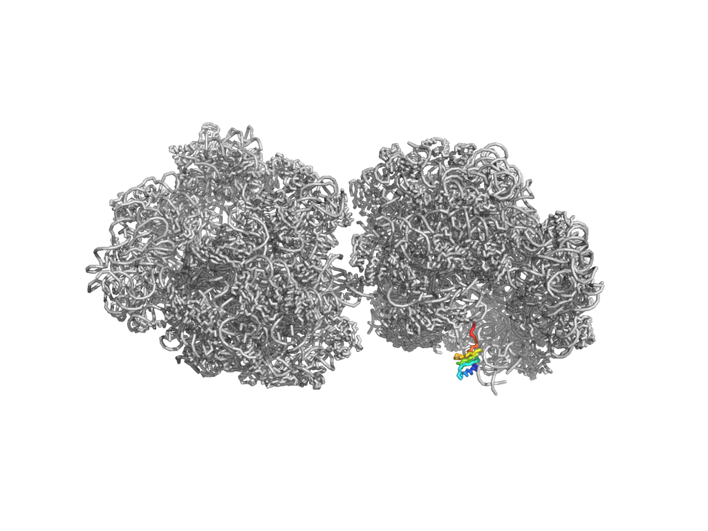 e4v95B21 B2:1-70 Long alpha-hairpin Ribosomal protein L29 (L29p) Ribosomal protein L29 (L29p)