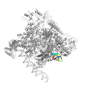 Helical hairpin insertion in E. coli DNA-directed RNA polymerase beta subunit |