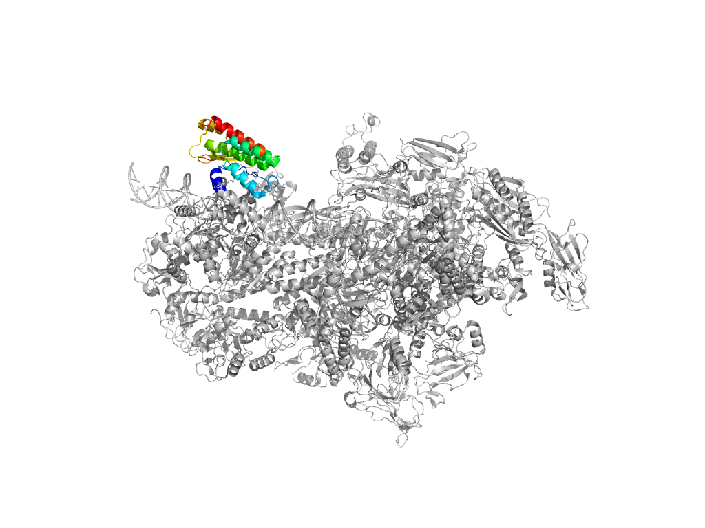 e6x50J3 J:639-810 second helical domain in RNA-polymerase beta-prime subunit second helical domain in RNA-polymerase beta-prime subunit second helical domain in RNA-polymerase beta-prime subunit