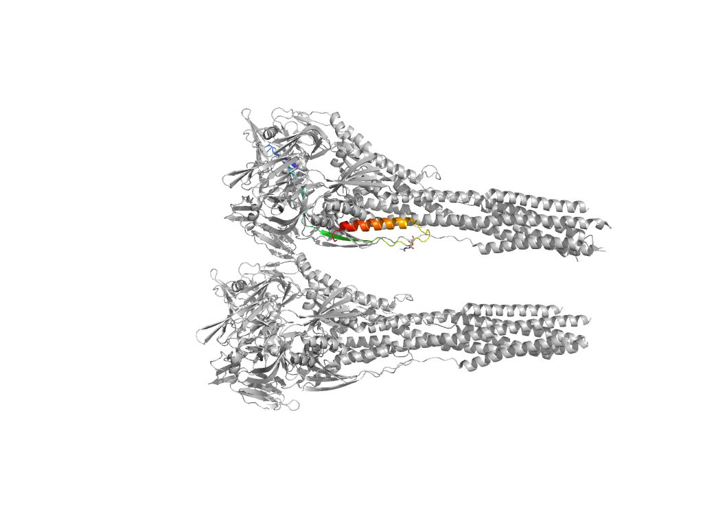 - H: Head and neck region of the ectodomain of paramyxoviruses fusion glycoprotein