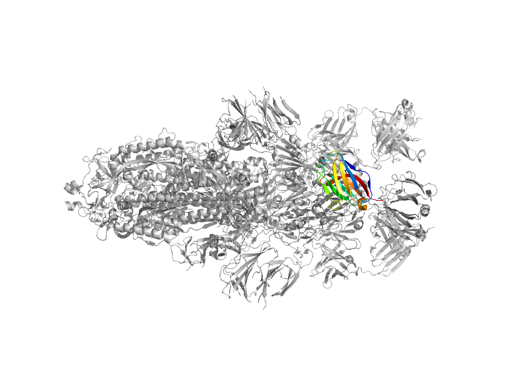 e7mw2B3 B:309-328,B:530-620,B:641-694 Beta domain of coronavirus spike glycoprotein Beta domain of coronavirus spike glycoprotein Beta domain of coronavirus spike glycoprotein
