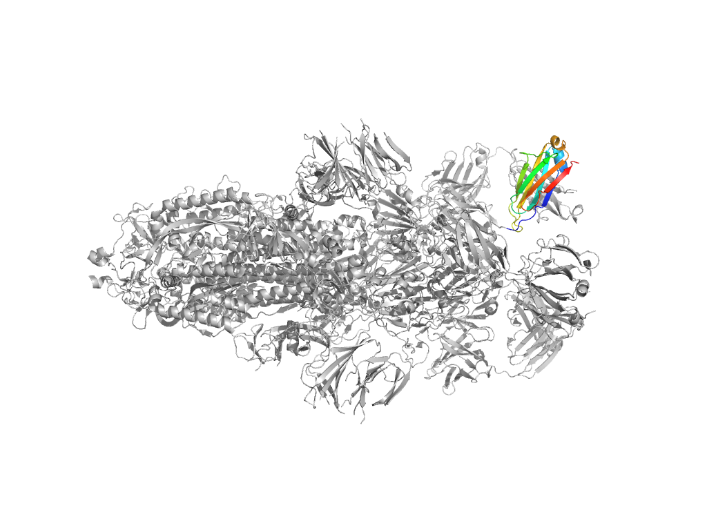e7mw2B3 B:309-328,B:530-620,B:641-694 Beta domain of coronavirus spike glycoprotein Beta domain of coronavirus spike glycoprotein Beta domain of coronavirus spike glycoprotein