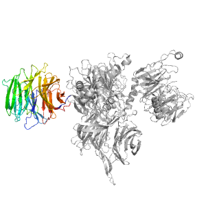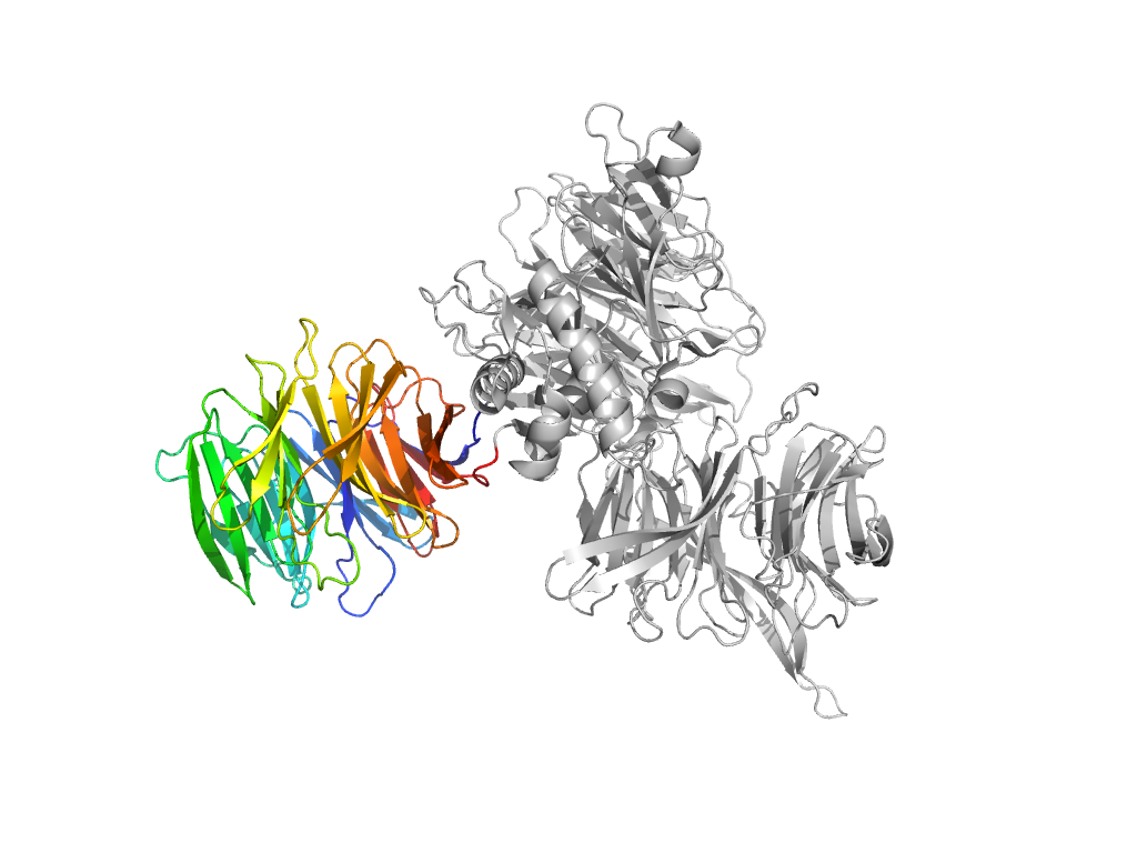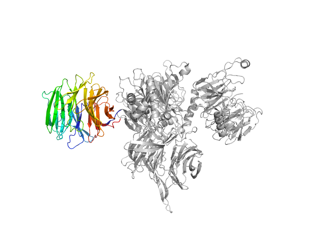 | e8ajnA1 | A:356-392,A:709-1044 | beta-propeller-like | beta-propeller | 7-bladed |