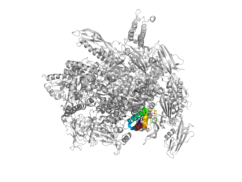 e8fvwF10 F:939-1044 Helical hairpin insertion in E. coli DNA-directed RNA polymerase beta subunit Helical hairpin insertion in E. coli DNA-directed RNA polymerase beta subunit Helical hairpin insertion in E. coli DNA-directed RNA polymerase beta subunit